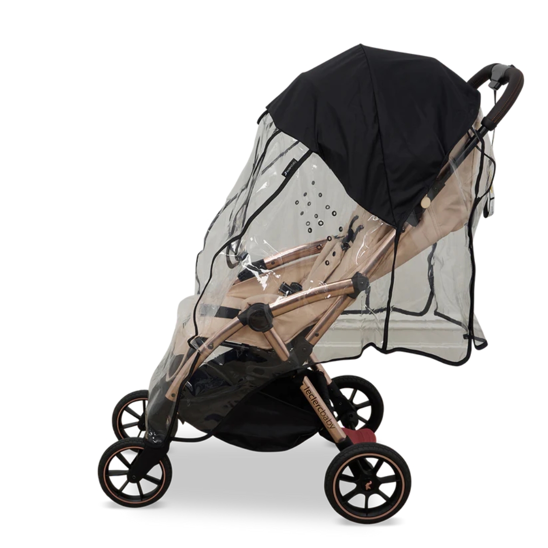 Mis tahes Leclercbaby jalutuskäruga ühilduv Luxury vihmakate on teiste kaubamärkide omadest pikem, et pakkuda lapsele kaitset pealaest jalatallani. Lisaks võimaldab vihmakatte lisapikkus kasutada seda igas seljatoe asendis. Tänu takjapaeltele, mis muudavad vihmakatte paigaldamise või jalutuskärult eemaldamise lihtsaks, pole enam vaja jännata halvasti sobituvate vihmakatetega.